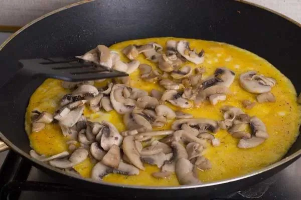 قارچ ۳۰۰ گرم، پیاز ۱ عدد، تخممرغ ۲–۳ عدد، نمک، فلفل