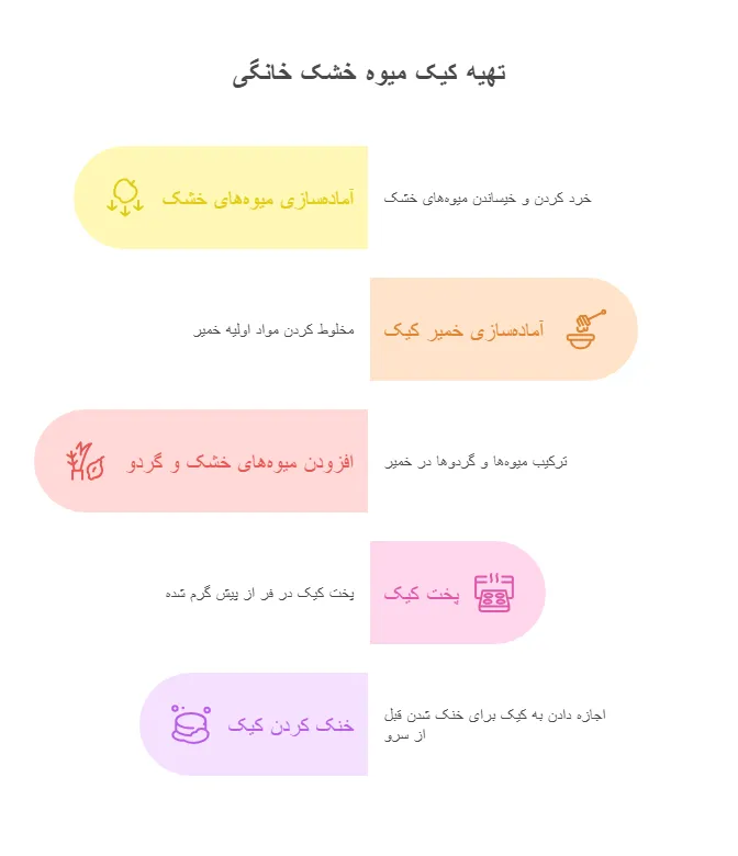 مراحل تهیه کیک میوه خشک خانگی