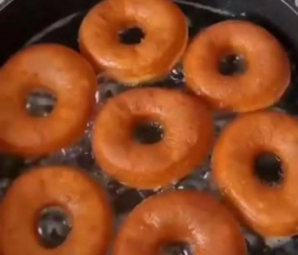 زمان سرخ کردن: هر دونات حدود ۲–۳ دقیقه برای هر طرف کافی است. وقتی زیرش طلایی شد، آن را برگردان.