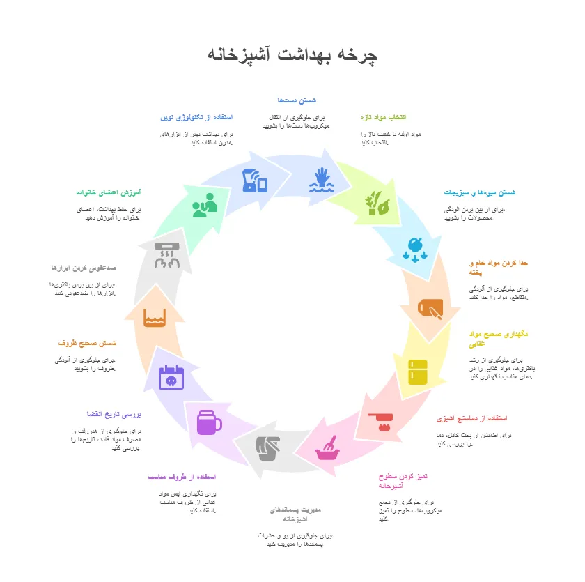 از شستوشوی صحیح دستها تا استفاده از ابزارهای مدرن، هر یک از این گامها به شما کمک میکند تا در مسیر سبک زندگی سالم و پایدار قدم بردارید. پس همین امروز شروع کنید، آشپزخانهتان را بررسی کنید و با اعتماد به نفس، غذاهایی تهیه کنید که نهتنها خوشمزه، بلکه ایمن و مغذی هستند.