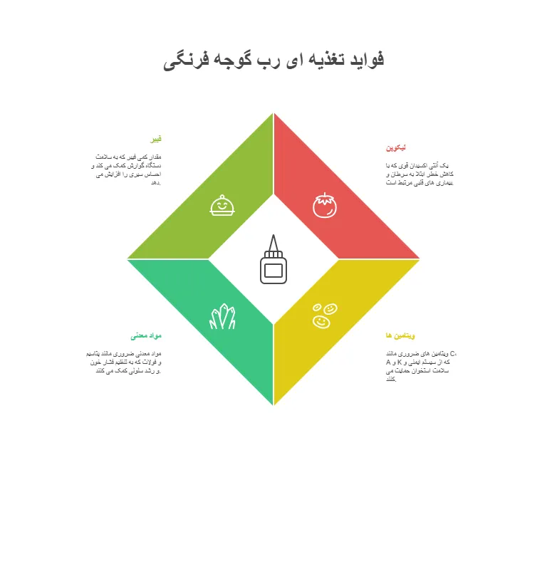 رب گوجهفرنگی خانگی، بهویژه در صورت تهیه از گوجههای ارگانیک، منبعی غنی از لیکوپن و دیگر مواد مغذی است. این ترکیبات میتوانند به تقویت سیستم ایمنی، کاهش التهابات و بهبود سلامت پوست کمک کنند. پخت گوجهفرنگی باعث افزایش قابلیت جذب لیکوپن در بدن میشود. البته، به دلیل غلظت بالا، توصیه میشود در مصرف رب اعتدال رعایت گردد؛ بهویژه در رژیمهای غذایی کمنمک.