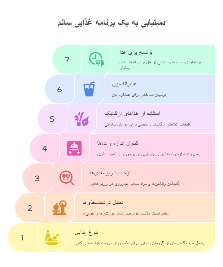 یک برنامه غذایی موفق باید با فرهنگ، سلایق و سبک زندگی فرد هماهنگ باشد. در ایران، غذاهای سنتی مانند خورشتها، پلوها و آشها میتوانند با کمی تغییر به گزینههایی سالم و ارگانیک تبدیل شوند. برای مثال: